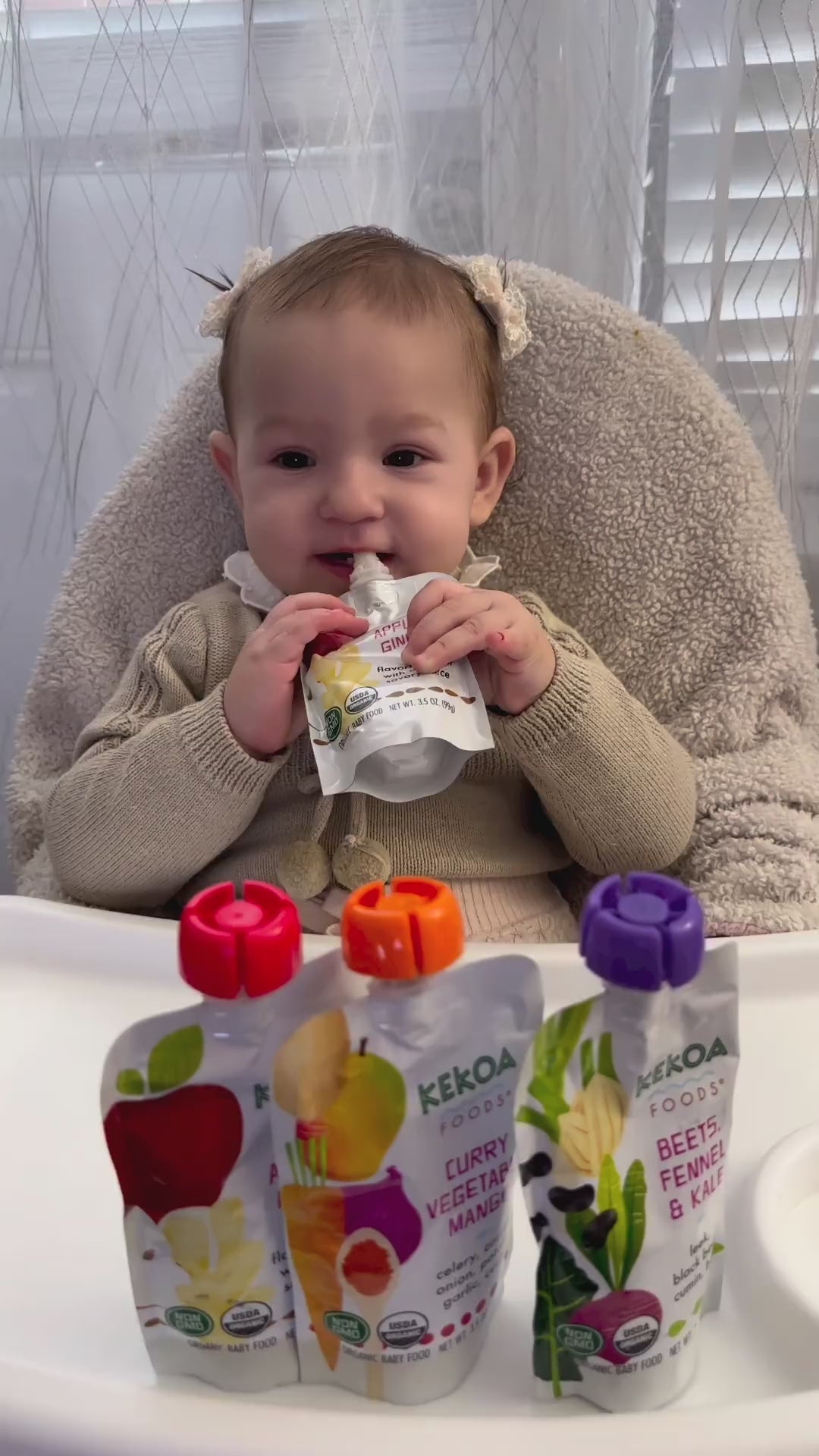 Kekoa Food baby food pouches are made of a Non-BPA packaging with a child safe top.