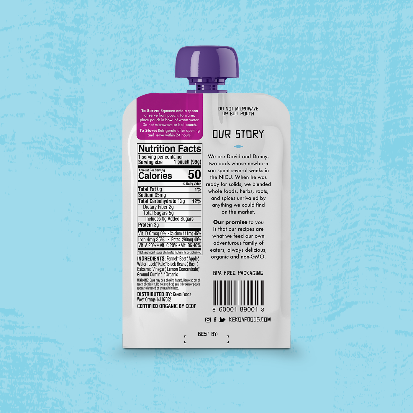 Beets, Fennel & Kale Squeeze Pouch, 100% Organic Vegetarian Baby Food Purée
