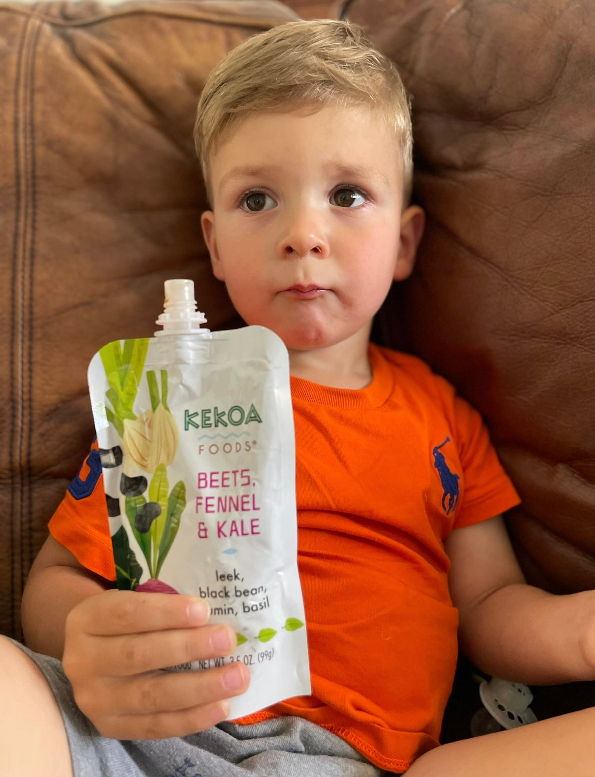 Kekoa Food baby pouches are made of a Non-BPA packaging with a child safe top.
