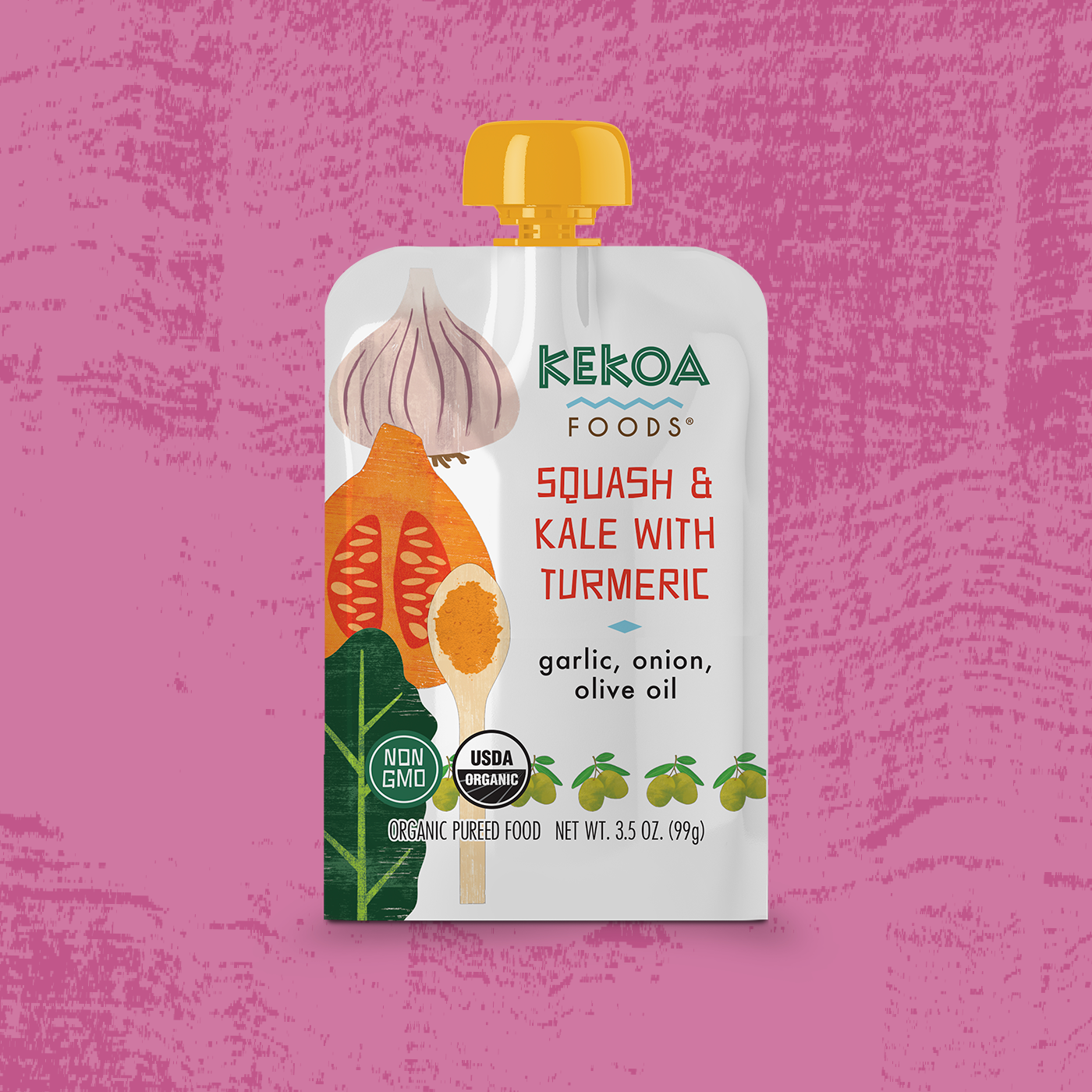 Considere incorporar la bolsa de Calabaza y Kale con Cúrcuma de Kekoa Foods a las comidas de su hijo. Esta bolsa es rica en vitaminas A y C provenientes de la col rizada y la calabaza, y la cúrcuma le aporta un extra de energía gracias a sus propiedades antiinflamatorias, beneficiosas para el sistema inmunitario.