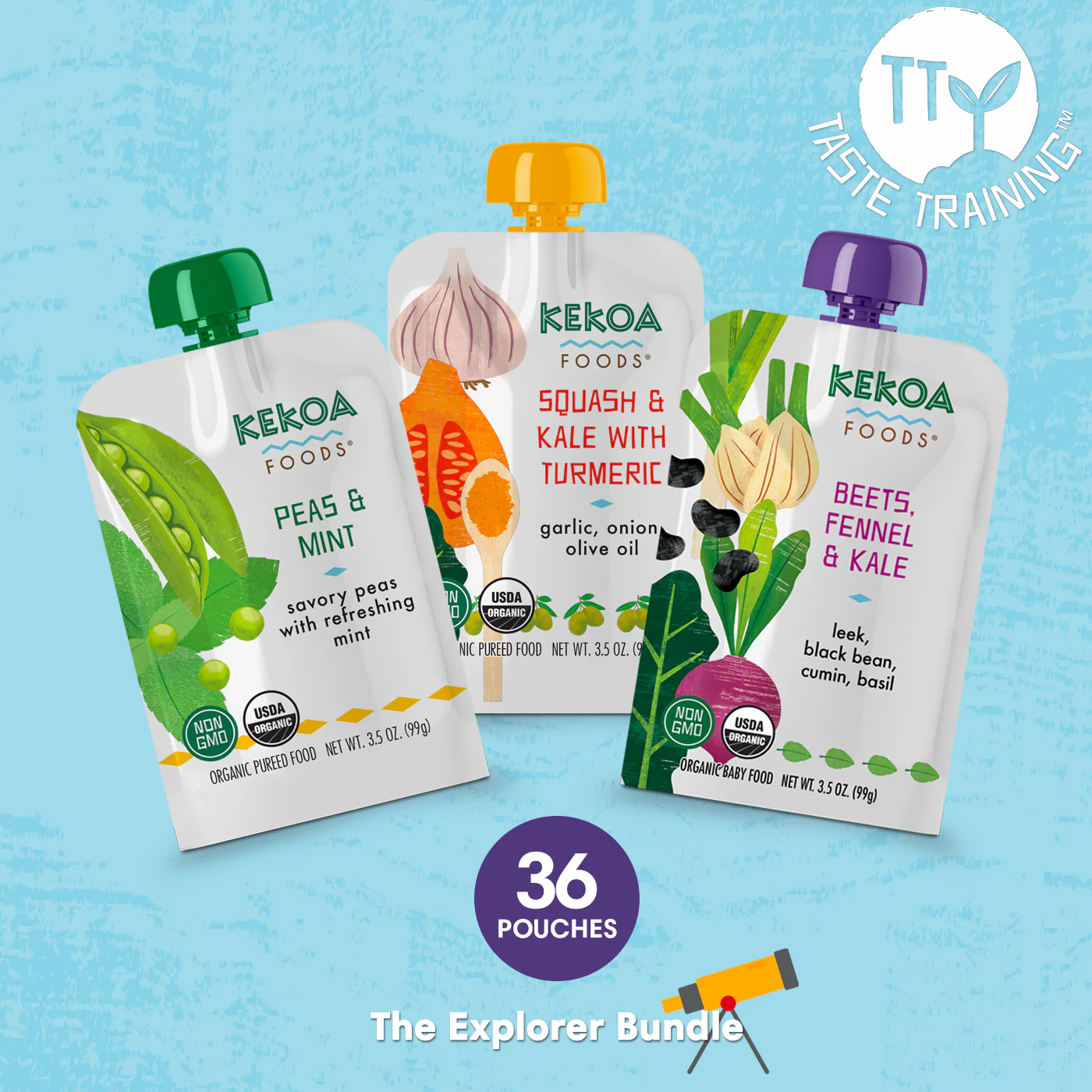 Entrenamiento del gusto | Paquete Explorer: guisantes y menta, calabaza y col rizada con cúrcuma, remolacha, hinojo y col rizada
