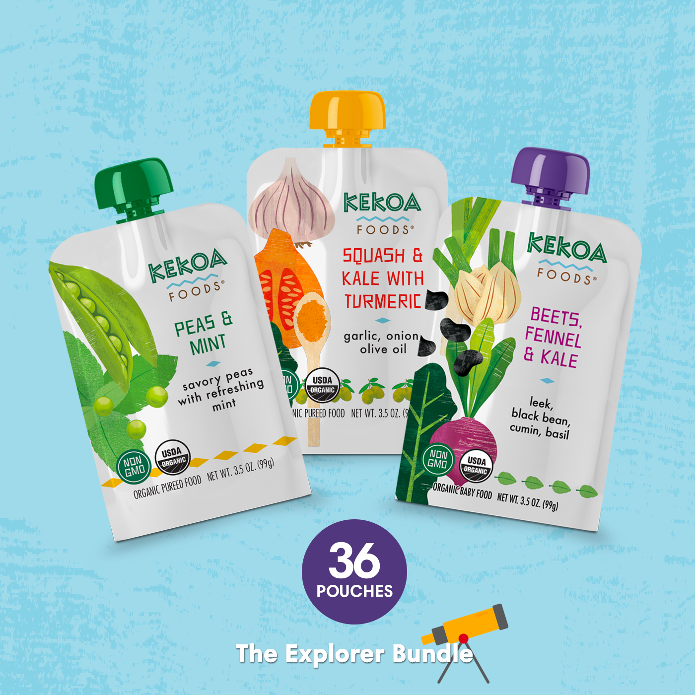 Los productos orgánicos de comida para bebés de Kekoa Foods están llenos de ingredientes limpios y saludables y sabores que expanden el paladar que le encantarán a su bebé. Establezca las bases para la salud y el bienestar de su hijo durante toda su vida con estas bolsas para bebés saludables, perfectas para familias ocupadas y en movimiento.