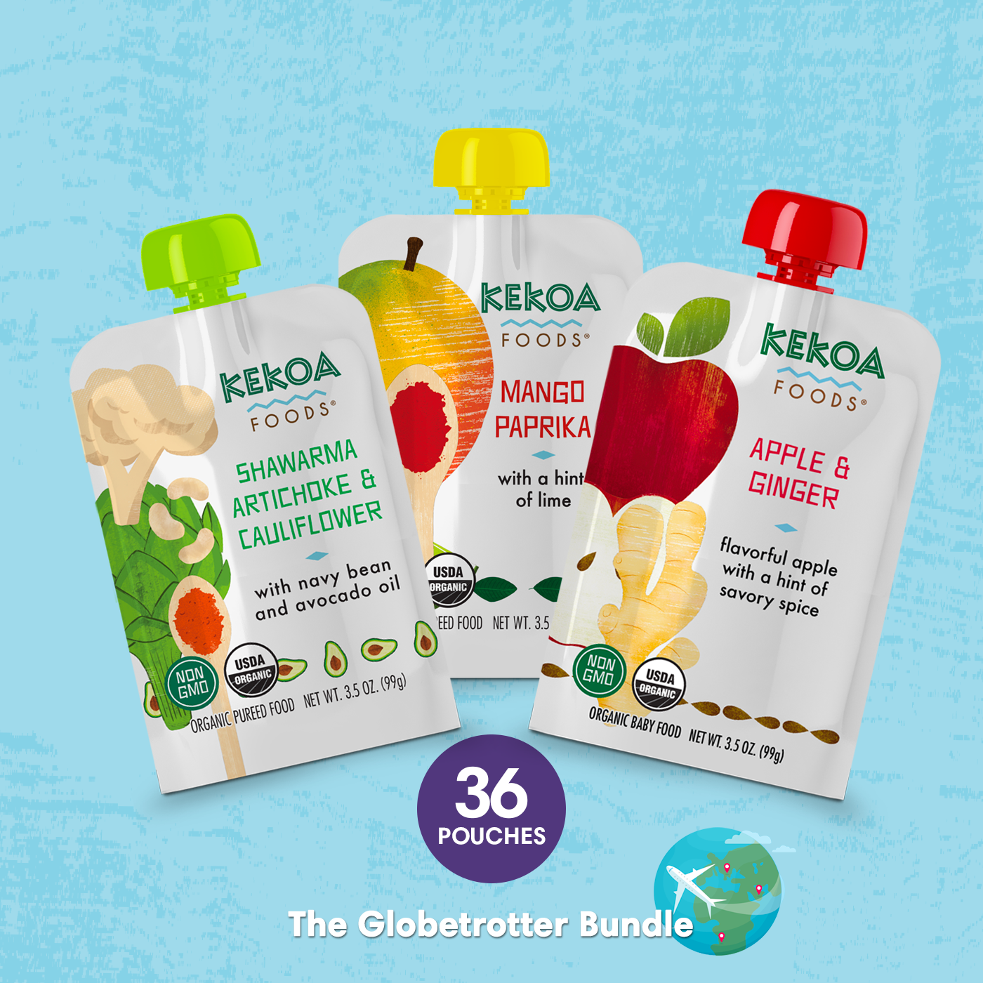 The Globetrotter bundle is set up to take your little one's palate to new heights! This bundle brings the familiar sweetness of ripened fruit, combining it with exciting and exotic flavors. Apples meet the zing of ginger and mangos the warmth of paprika - this completes your child's Taste Training. Your little one is ready to tackle any of our delicious flavors in any order from here on!